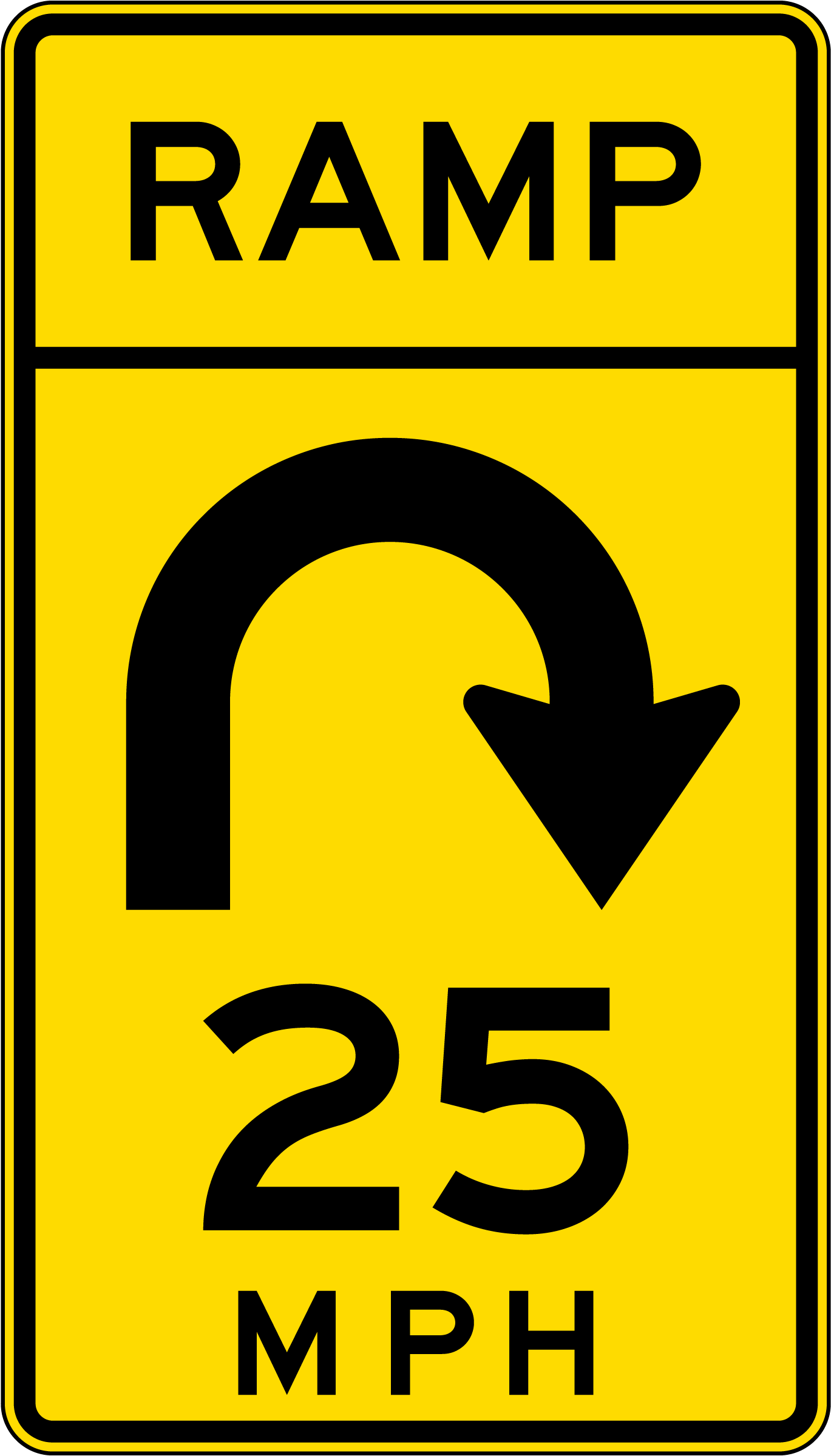 Advisory Ramp Speed 25 Mph Right Loop Sign