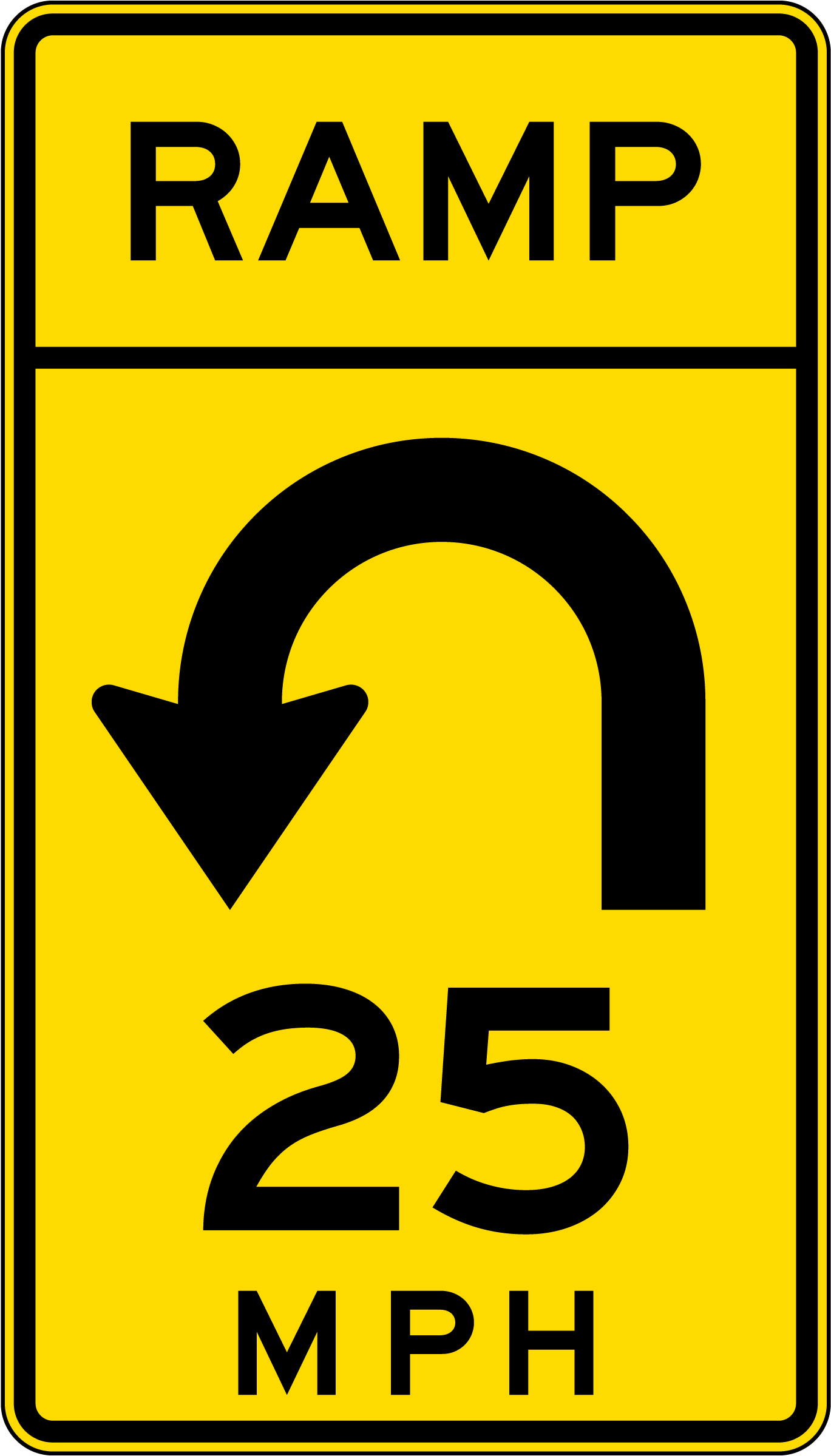 Advisory Ramp Speed 25 Mph Left Loop Sign