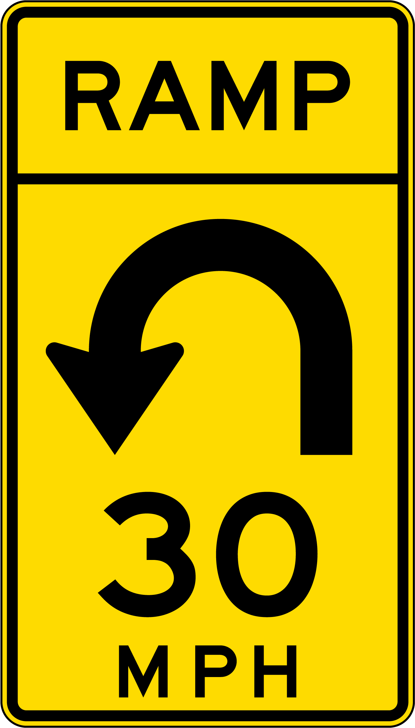 Advisory Ramp Speed 30 Mph Left Loop Sign