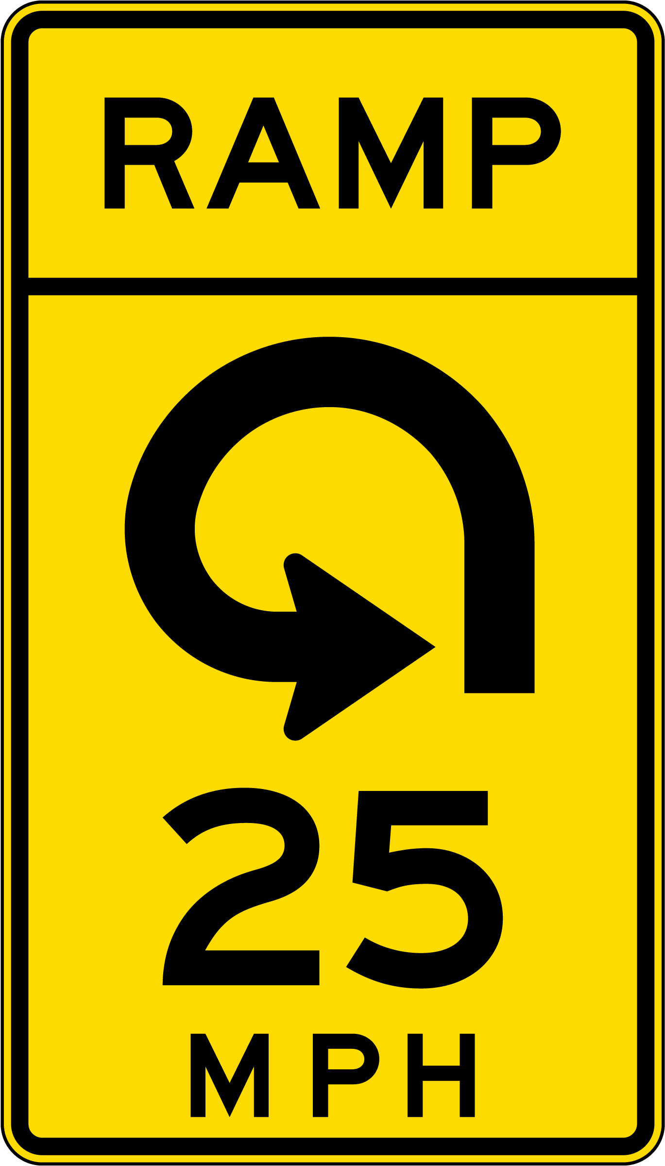 Advisory Ramp Speed 25 Mph Reverse Curve Left Sign