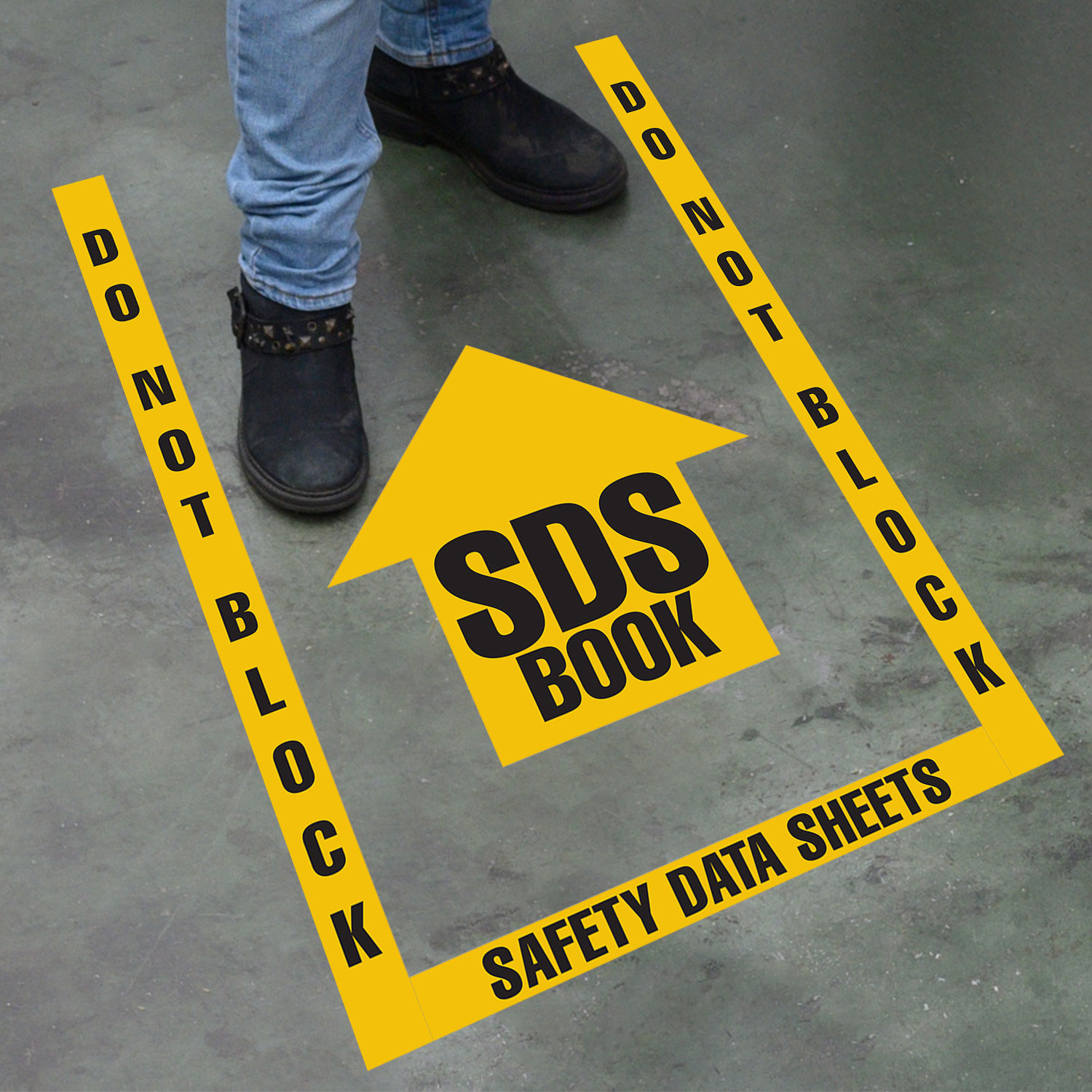 Our Do Not Block SDS Book Floor Marking, OSHA Compliance Kit helps keep your facility OSHA-compliant by clearly identifying the required clearance area for your Safety Data Sheet book. The bold floor marking prevents obstruction, ensuring quick access in emergencies. It’s a reliable visual reminder in warehouses, labs, and industrial workplaces.