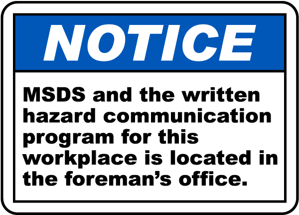 This MSDS Located In The Foreman Office Sign has official ANSI headers for safety protocol and compliance. A MSDS Located In The Foreman Office Sign is a helpful aid for the protection of the health and safety of personnel, and is not an alternative for required protective actions for eliminating or reducing hazards.