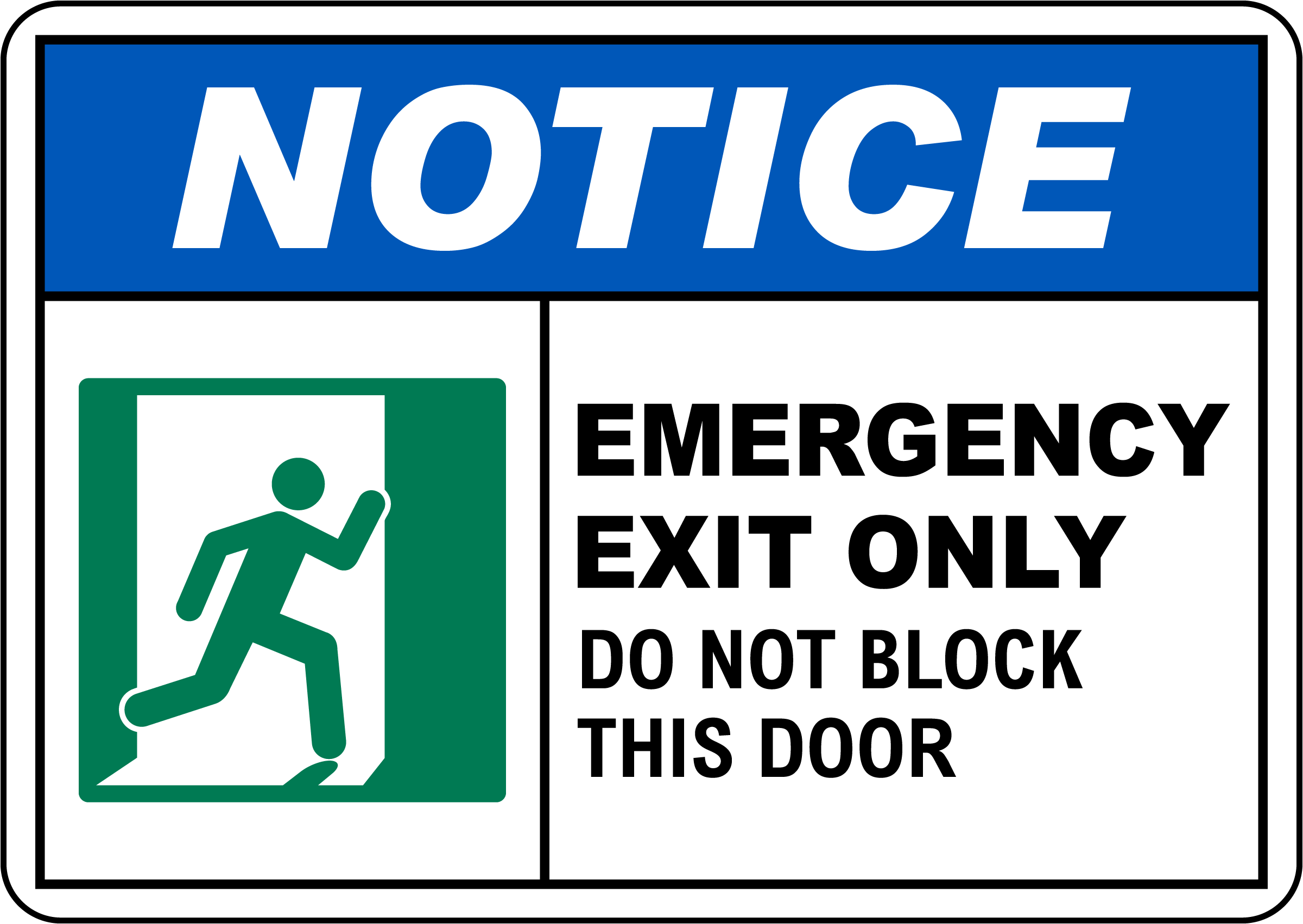 NOTICE Emergency exit only. Do not block this door.