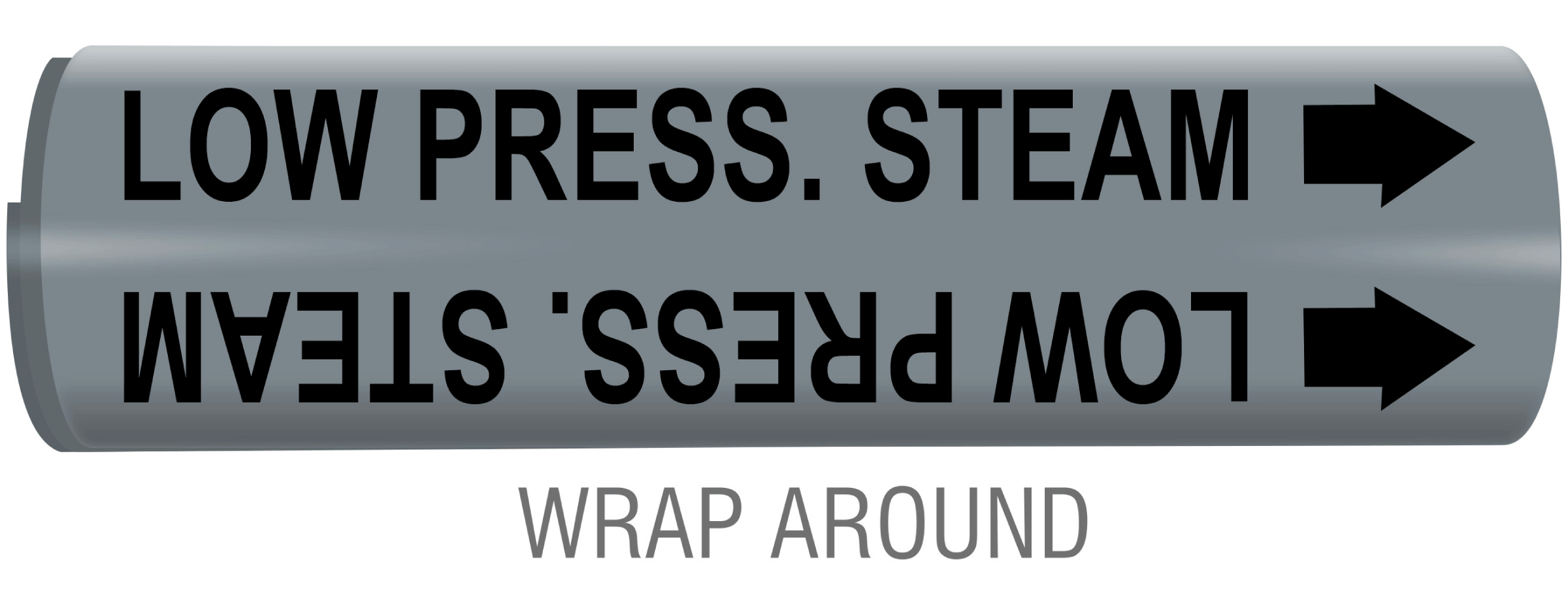 Our Low Press. Steam Snap-Around and Strap-On Pipe Marker helps identify low-pressure steam lines in heating or process systems. Its durable design and secure application style make it ideal for boiler rooms, maintenance areas, and industrial facilities.