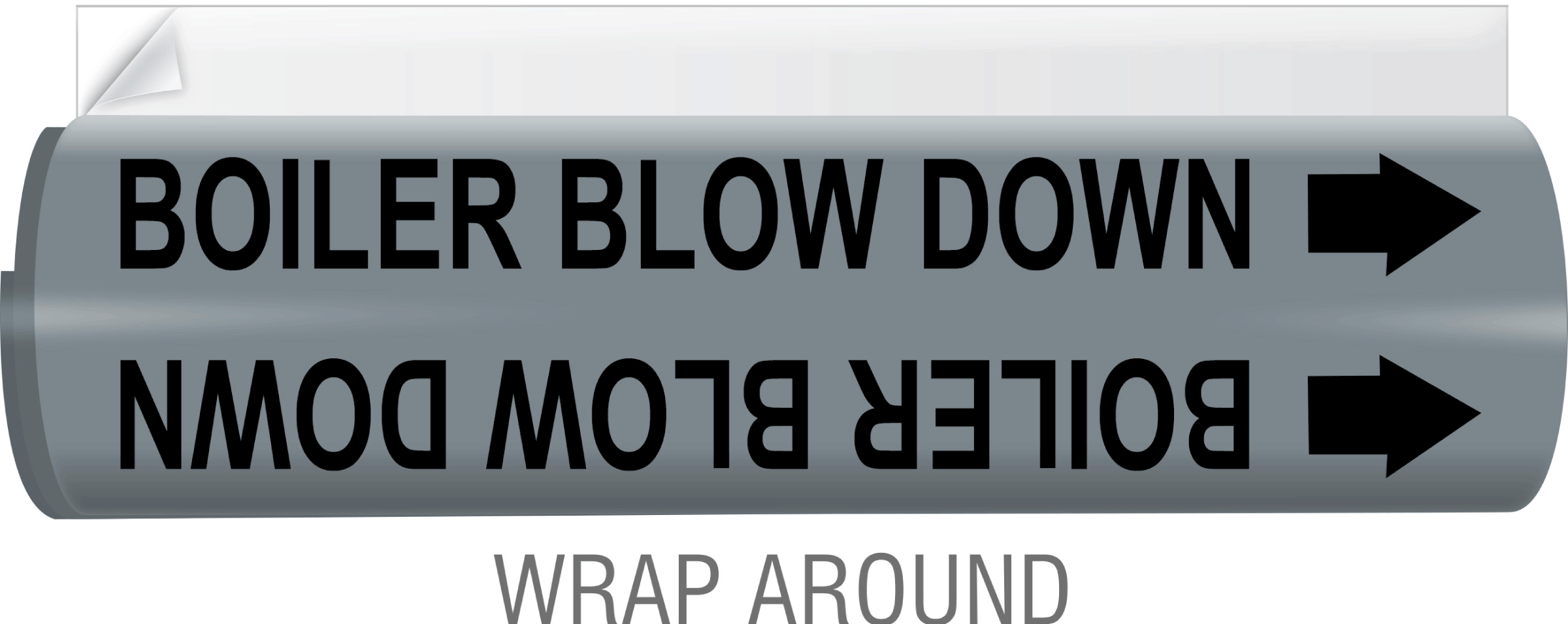 For pipe diameters 1/2″ through 7-7/8″, use Wrap Around markers (Styles 4A, 4B, 4E, 4F); these markers will wrap around pipes and are secured in place by an overlapping clear adhesive strip.