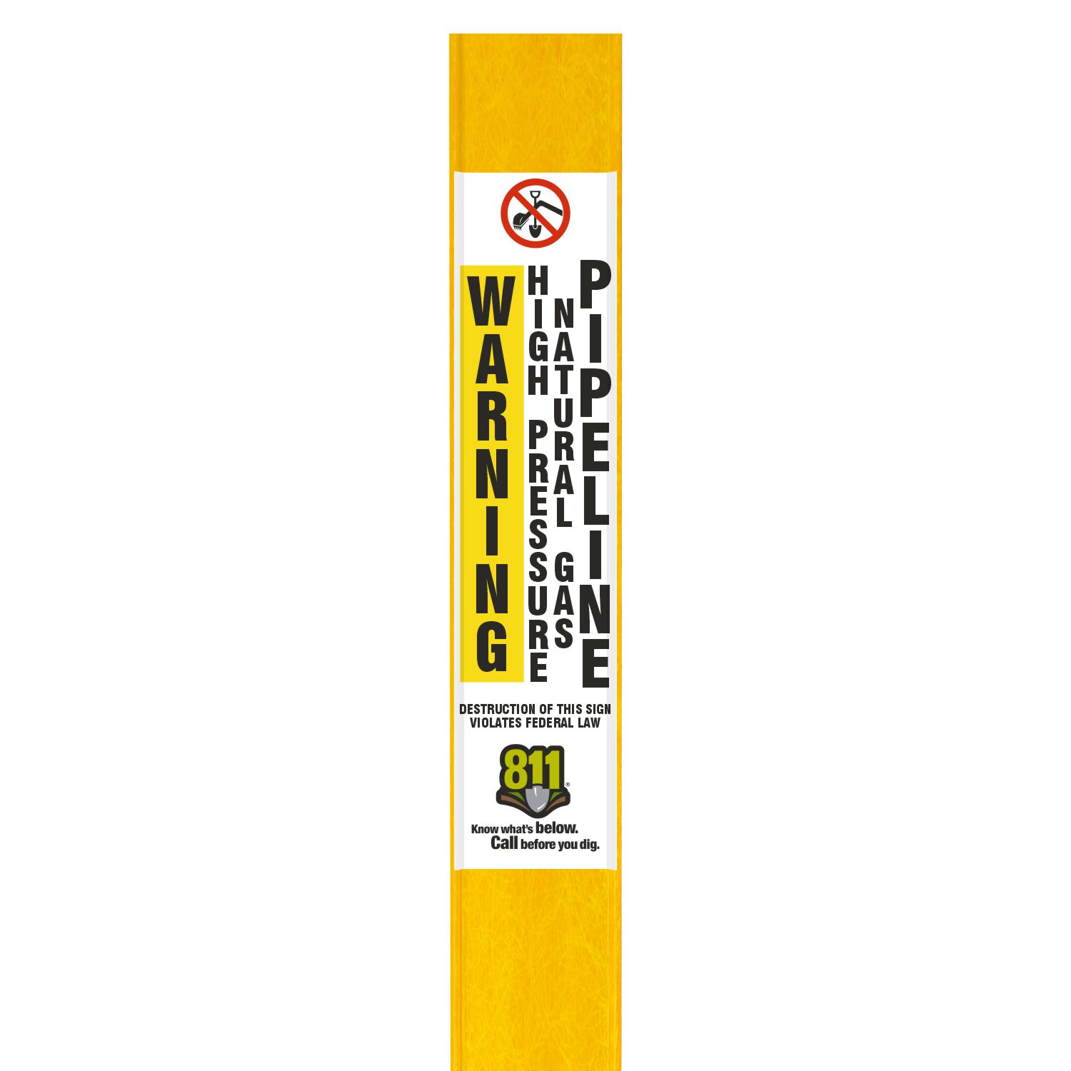 Our Warning High Pressure Natural Gas Pipeline Flat Marker indicates a buried line with pressurized natural gas. It plays a vital role in keeping work zones secure and compliant.
