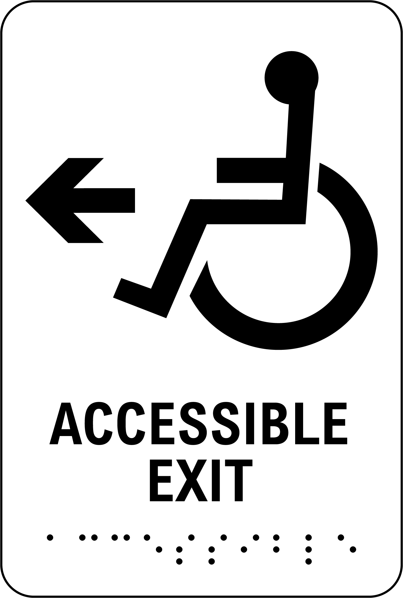 Our Accessible Exit To The Left Sign with Braille guides individuals toward the left exit. Crafted from sturdy materials for long-lasting use, this sign complies with ADA standards, offering clear and accessible exit instructions.