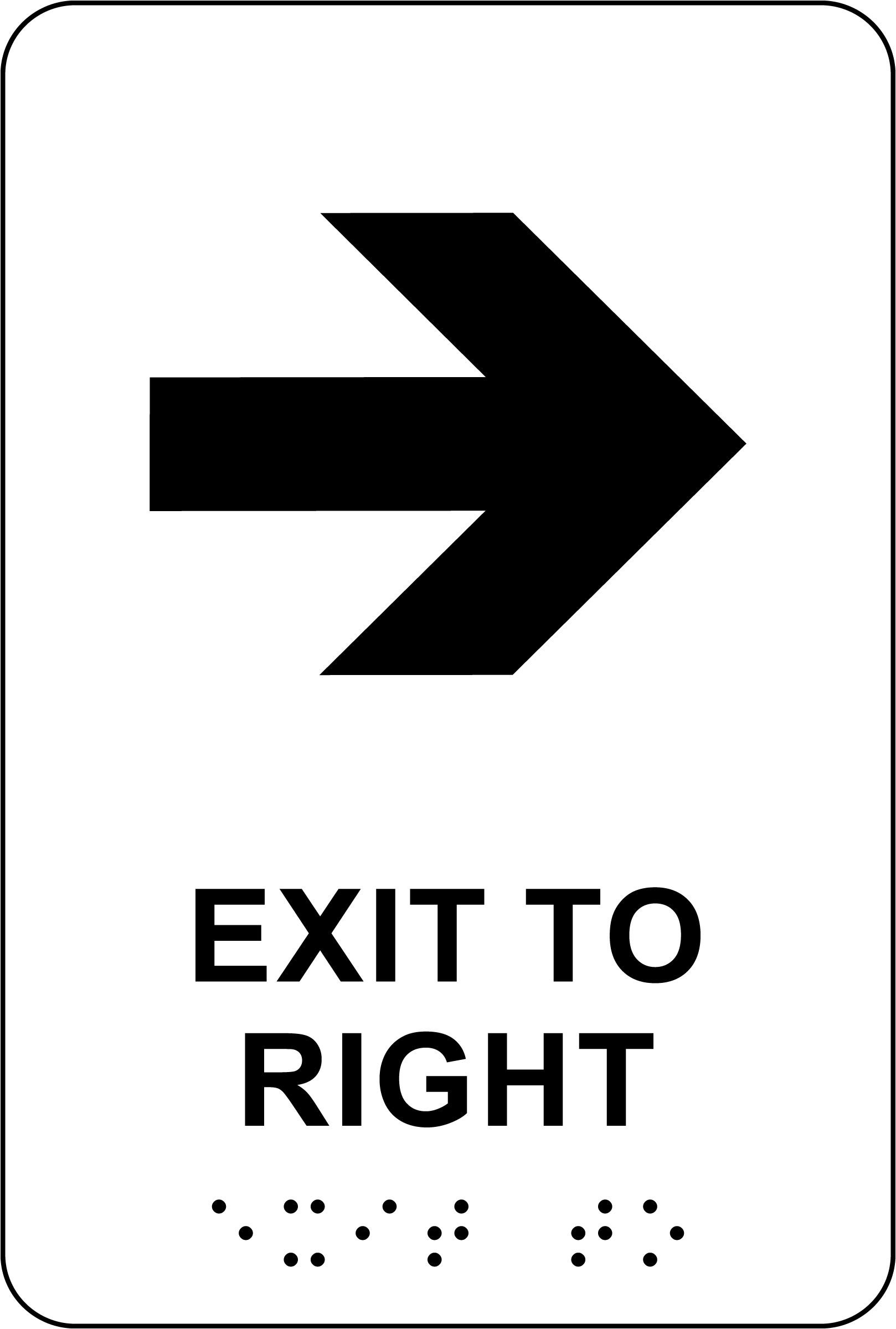 Our Exit To Right Sign with Braille serves as an accessible and clear directional indicator for exits to the right. Made with superior materials, this sign includes Braille for visually impaired individuals, ensuring durability and visibility in all conditions.