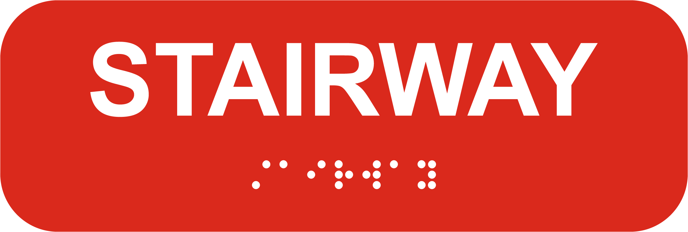 This Stairway Sign with Braille helps identify stair access points, ensuring compliance with accessibility requirements and aiding navigation for all individuals. Featuring raised text and Braille, it provides a clear and professional solution for marking stairwells in commercial, residential, and public buildings.