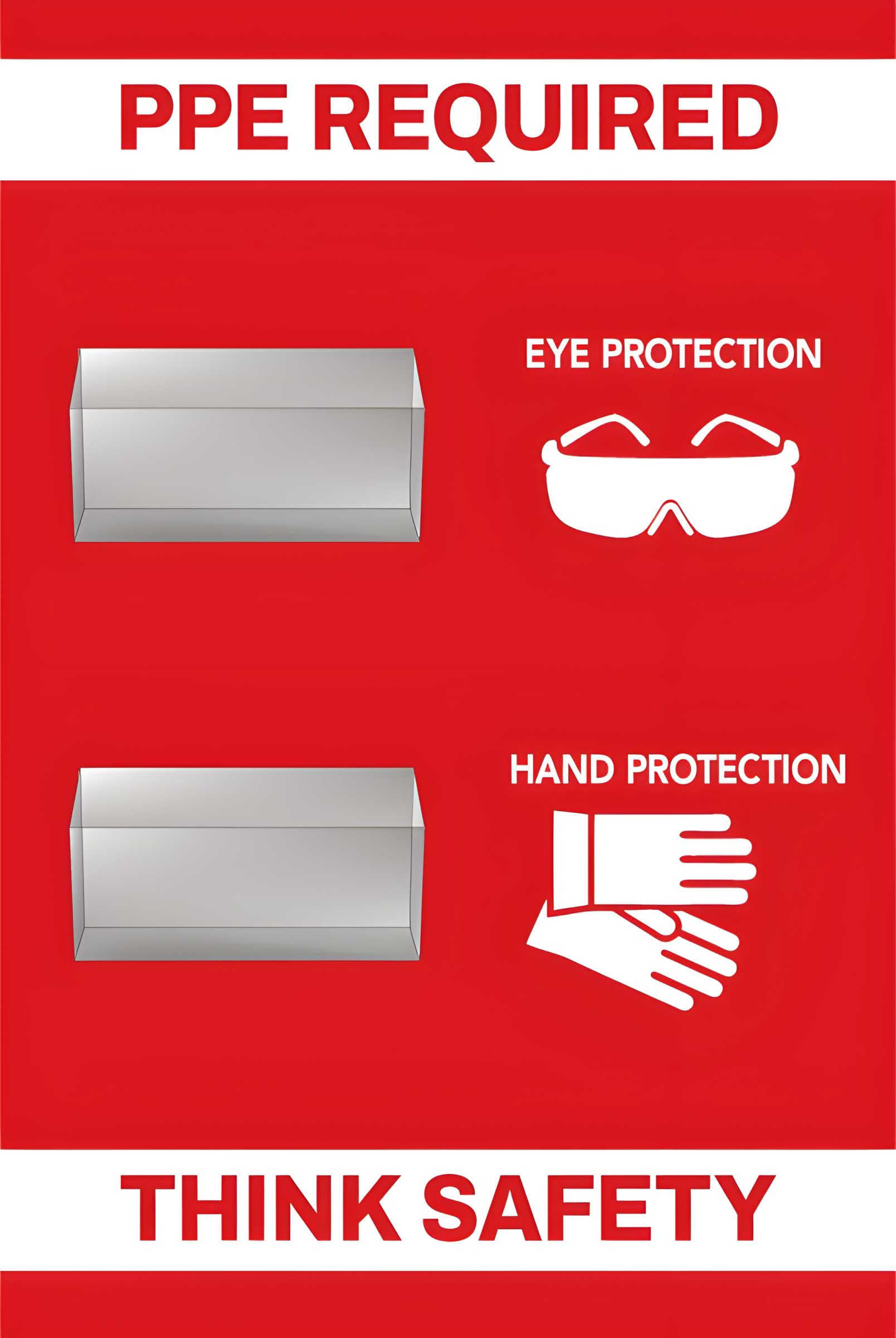 - Improve Safety Compliance – Makes required PPE visible and accessible, ensuring workers know exactly what protection is needed before entering the area.
