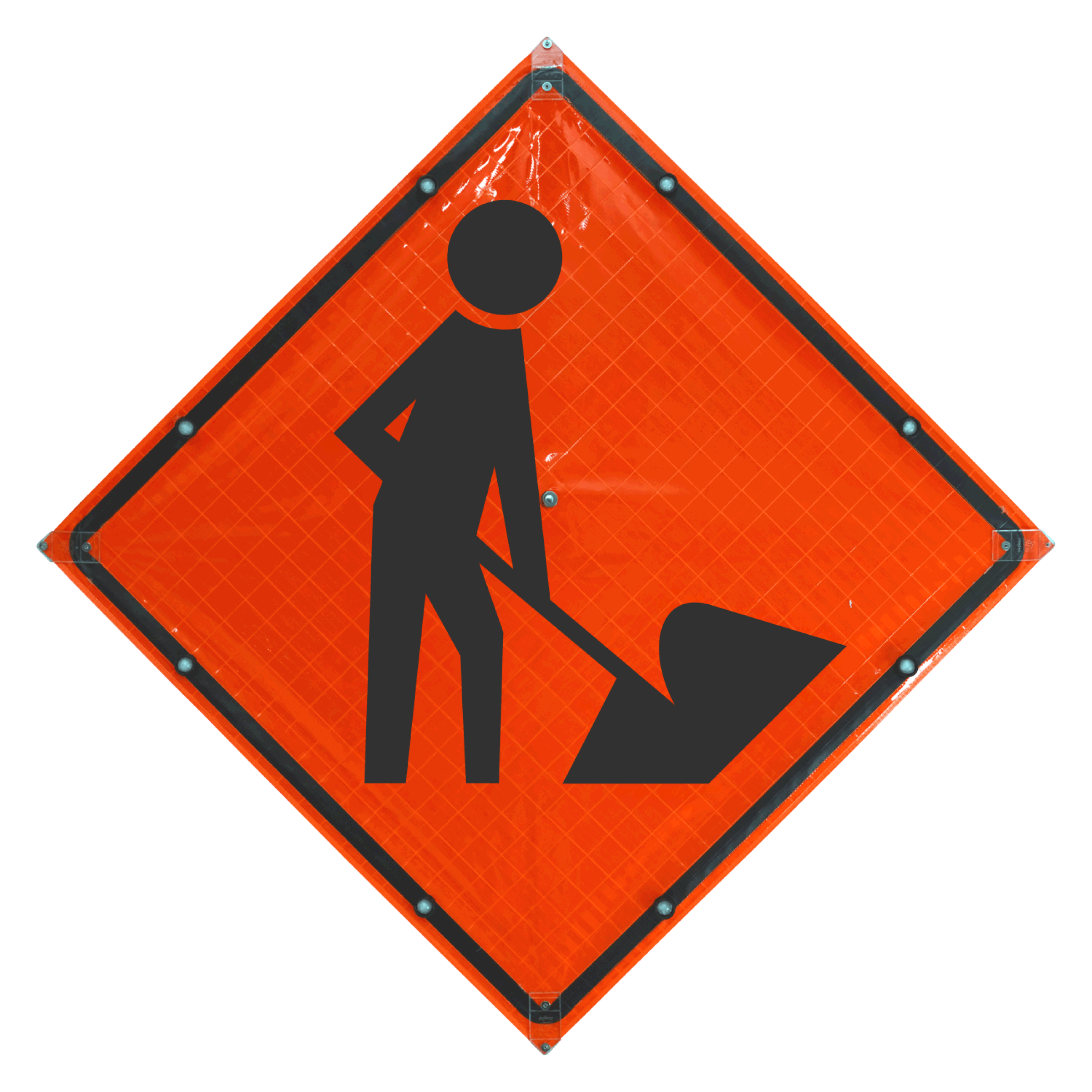 Reinforced Corner Pockets – Securely mounts to standard roll-up sign stands