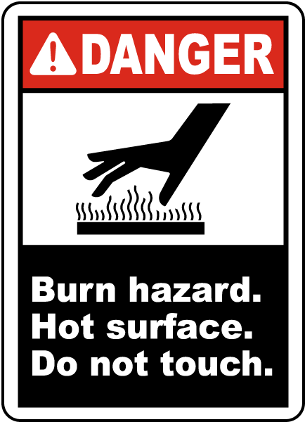 A Hot Surface Do Not Touch Label has official ANSI headers for safety protocol and compliance. A Hot Surface Do Not Touch Label is a useful tool to help protect the health and safety of staff, and is not a substitute for necessary protective measures for lessening or eliminating hazards.