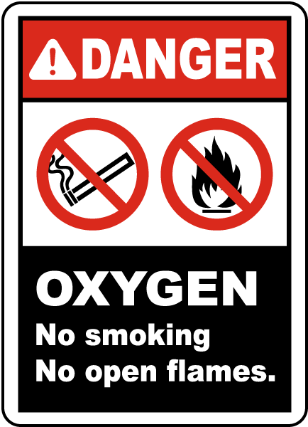 An Oxygen No Smoking No Open Flame Label has official ANSI headers for safety protocol and compliance. An Oxygen No Smoking No Open Flame Label is a helpful tool to help protect the health and safety of personnel, and is not a replacement for required protective measures for lessening or removing hazards.