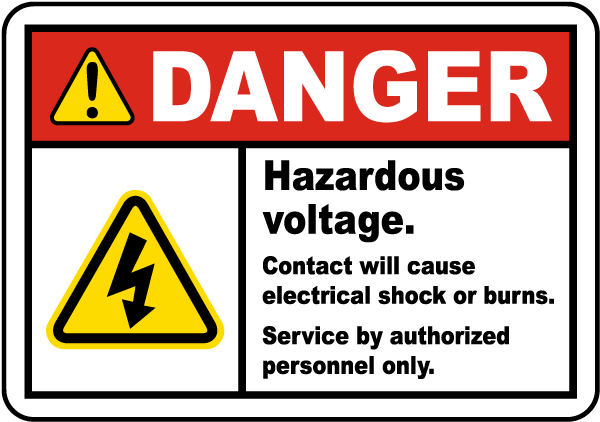 This Hazardous Voltage Will Shock Label uses official ANSI headers for safety protocol and compliance. A Hazardous Voltage Will Shock Label is a useful device to help protect the health and safety of personnel, but is not an alternative for required protective measures for eliminating or abating hazards.