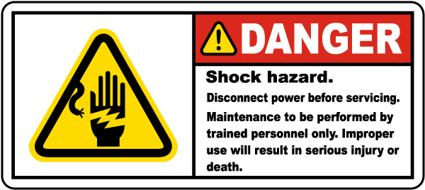 Danger Shock Hazard. Disconnect Power Before Servicing. Maintenance To Be Performed By Trained Personnel Only. Improper Use Will Result In Serious Injury Or Death.