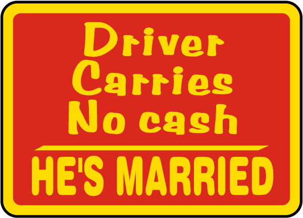 This Driver Carries No Cash Sign is a great way to add some fun to your workplace or at home. Printed on the same materials as our official safety signs, your Driver Carries No Cash Sign will provide laughs for years in the office, home, or as a gift.