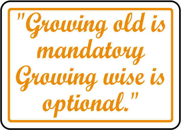 This Growing Wise Is Optional Sign adds some fun to your home or office. Funny signs are printed using advanced printing processes on durable materials. This signs with novelty messages are a great fit in your workplace, at home, or as a gift.