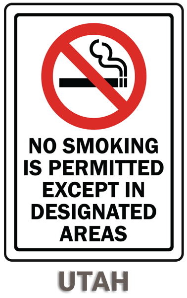 This Utah No Smoking Sign uses effective messages to address smoking procedures and flammable hazard concerns. A Utah No Smoking Sign is a useful device to help protect the health and safety of personnel, but is not an alternative for required protective measures for eliminating or abating hazards.