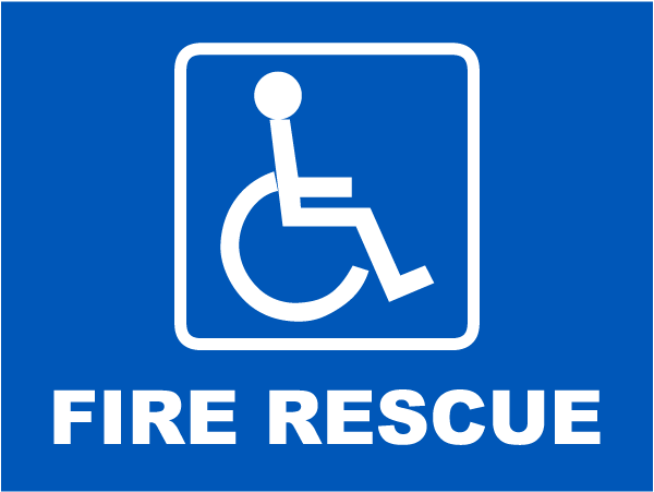 This Accessible Fire Rescue Label has effective messages to address workplace procedures and safety concerns. An Accessible Fire Rescue Label is a helpful resource to aid in the protection of the health and safety of staff, and is not an alternative for required protective measures for eliminating or reducing hazards.