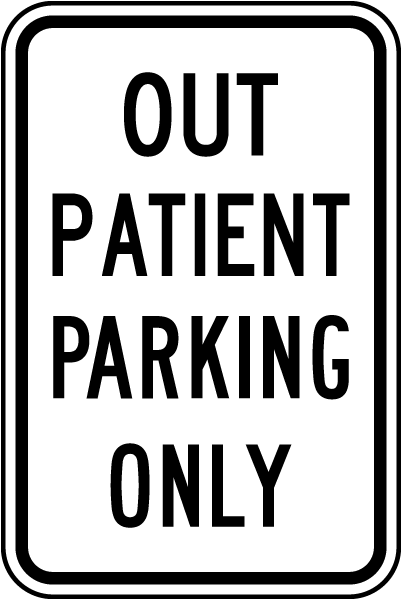 This Out Patient Parking Only Sign uses effective messages to address parking policy and traffic concerns. An Out Patient Parking Only Sign is a useful tool to help protect the health and safety of personnel, but is not a substitute for required protective measures for eliminating or reducing hazards.