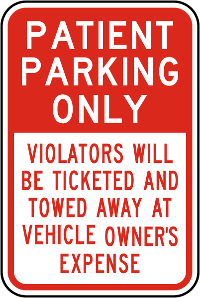This Patient Parking Only Violators Towed Sign has effective messages to address parking procedures and traffic concerns. A Patient Parking Only Violators Towed Sign is a helpful resource to aid in the protection of the health and safety of staff, and is not an alternative for required protective measures for eliminating or reducing hazards.