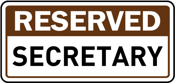 This Reserved Secretary Sign has effective messages to address parking policy and traffic concerns. A Reserved Secretary Sign is a helpful aid for the protection of the health and safety of personnel, and is not an alternative for required protective actions for eliminating or reducing hazards.