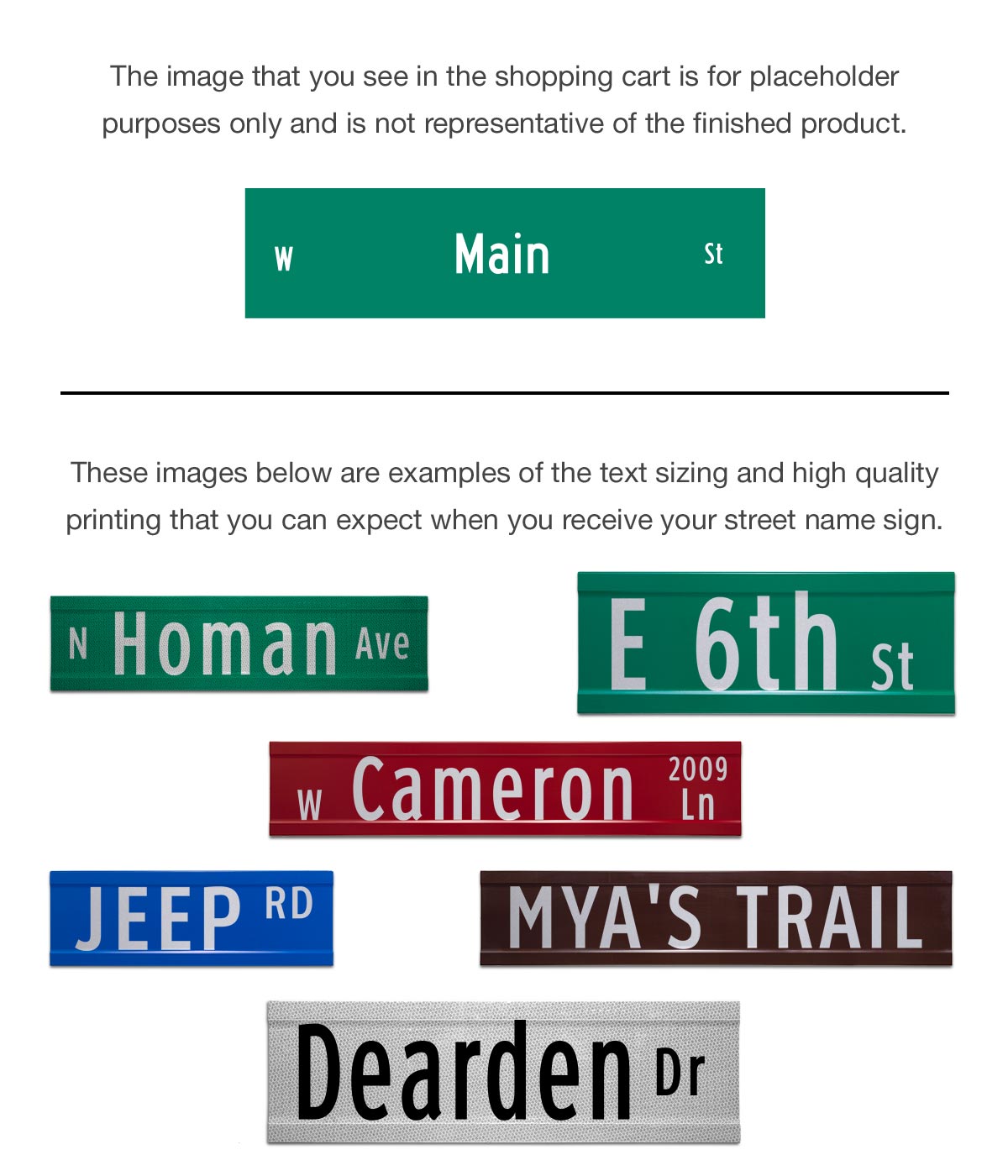 Please see the images below for actual signs printed with an image and street number.