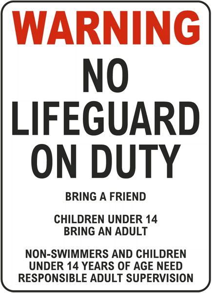 (B) "BRING A FRIEND -- Do not swim alone."