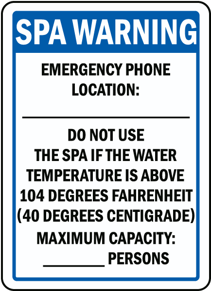 (B) "DO NOT USE THE SPA, IF THE WATER TEMPERATURE IS ABOVE 104 DEGREES FAHRENHEIT (40 DEGREES CENTIGRADE)" in letters at least 1 inch high;